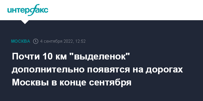 Почти 10 км "выделенок" дополнительно появятся на дорогах Москвы в конце сентября