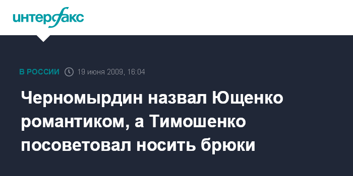 Черномырдин назвал Ющенко романтиком, а Тимошенко посоветовал носить брюки