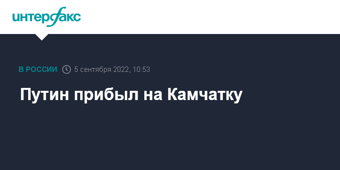 Москва. 5 сентября. INTERFAX.RU - Президент РФ Владимир Путин прибыл на Камчатку.