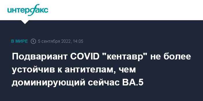 Подвариант COVID "кентавр" не более устойчив к антителам, чем доминирующий сейчас BA.5