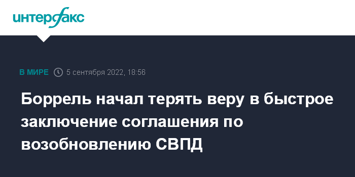 Боррель начал терять веру в быстрое заключение соглашения по возобновлению СВПД