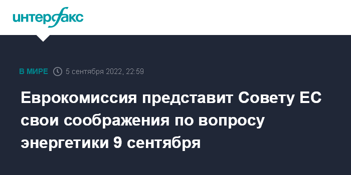 По сообщениям европейских СМИ, в ходе министерской дискуссии будут затронуты такие вопросы, как "потолки" цен на российские нефть и газ, совместные закупки странами ЕС ископаемых энергоносителей, разделение цен на газ и электричество и структурная реформа рынка электроэнергии.