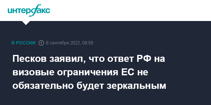 Песков заявил, что ответ РФ на визовые ограничения ЕС не обязательно будет зеркальным
