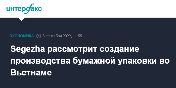 "Рассматриваем перспективу возможного размещения во Вьетнаме производства бумажной упаковки с дальнейшими поставками продукции на рынок АСЕАН с учетом принимаемых там ограничений по упаковке из пластика", - сообщил вице-президент по реализации государственных программ, устойчивому развитию и лесной политике Segezha Николай Иванов в ходе Восточного экономического форума (ВЭФ-2022).