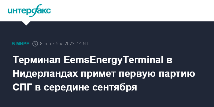Терминал EemsEnergyTerminal в Нидерландах примет первую партию СПГ в середине сентября