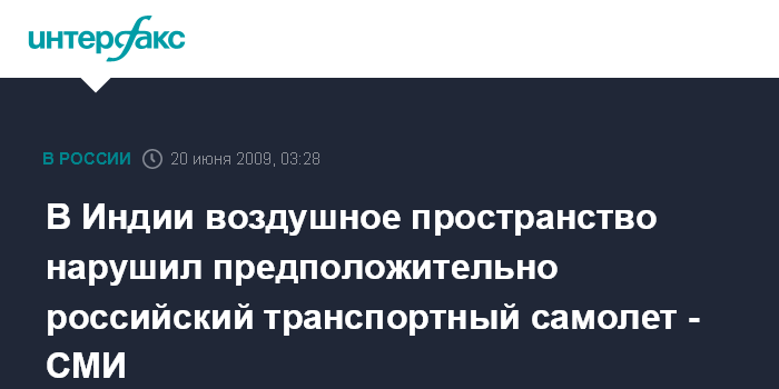 В Индии воздушное пространство нарушил предположительно российский транспортный самолет - СМИ