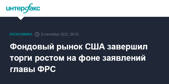 Москва. 9 сентября. INTERFAX.RU - Американские фондовые индексы завершили ростом торги в четверг, трейдеры оценивали заявления главы Федеральной резервной системы (ФРС) США Джерома Пауэлла.