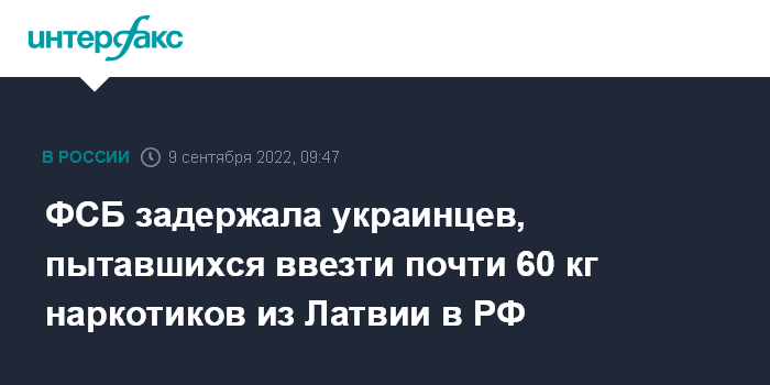 ФСБ задержала украинцев, пытавшихся ввезти почти 60 кг наркотиков из Латвии в РФ
