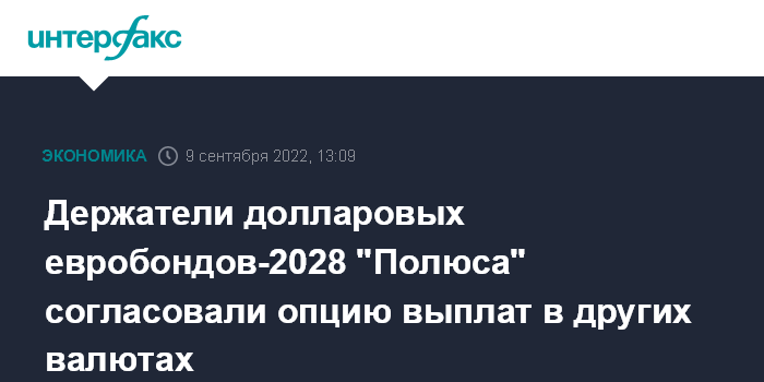 В июле "Полюс" обратился к держателям своих евробондов с предложением разрешить прямые выплаты основной суммы и начисленных процентов по евробондам, хранящимся у российских депозитариев, и предусмотреть, что выплаты по таким евробондам будут осуществляться в российских рублях по курсу ЦБ на дату выплаты. Также компания предложила предусмотреть, что выплаты по всем евробондам могут осуществляться в альтернативной валюте, включая евро, фунт, франк или рубль, в случае неспособности эмитента выплатить причитающиеся суммы в долларах.