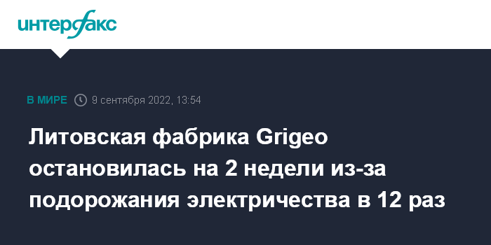 Литовская фабрика Grigeo остановилась на 2 недели из-за подорожания электричества в 12 раз