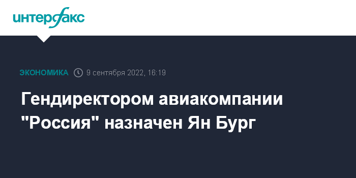 Москва. 9 сентября. INTERFAX.RU - Совет директоров авиакомпании "Россия" (входит в группу "Аэрофлот") утвердил в должности гендиректора Яна Бурга, сообщил перевозчик.