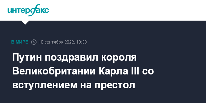 Путин поздравил короля Великобритании Карла III со вступлением на престол