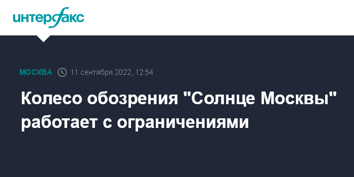 Москва. 11 сентября. INTERFAX.RU - Открытое накануне колесо обозрения "Солнце Москвы" работает с ограничениями из-за наплыва посетителей, сообщает в воскресенье сайт объекта.