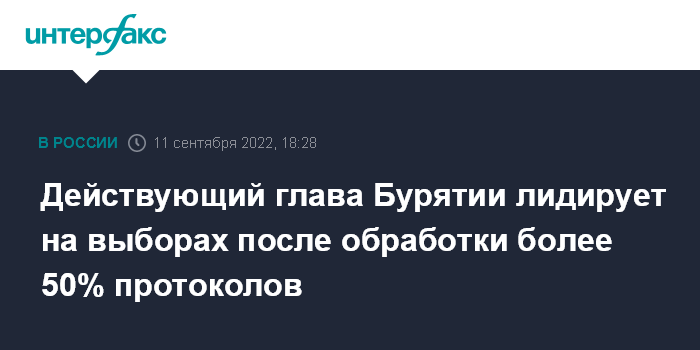 Действующий глава Бурятии лидирует на выборах после обработки более 50% протоколов