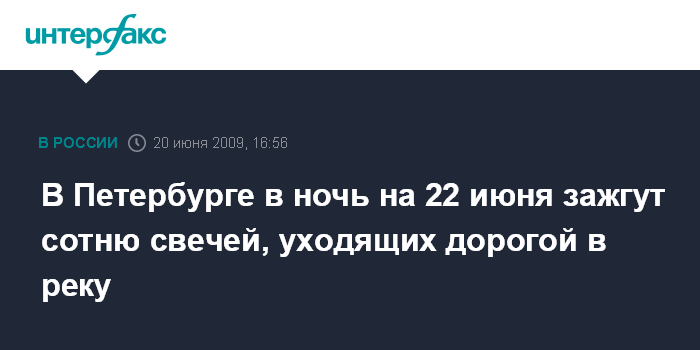 В Петербурге в ночь на 22 июня зажгут сотню свечей, уходящих дорогой в реку
