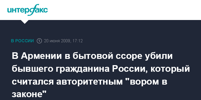 В Армении в бытовой ссоре убили бывшего гражданина России, который считался авторитетным "вором в законе"