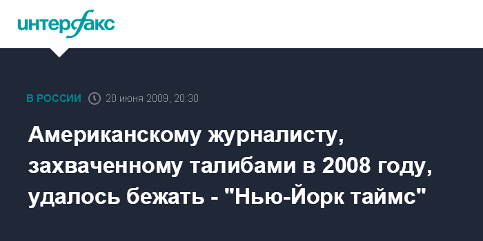 Американскому журналисту, захваченному талибами в 2008 году, удалось бежать - "Нью-Йорк таймс"