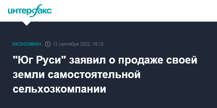 "Юг Руси" заявил о продаже своей земли самостоятельной сельхозкомпании