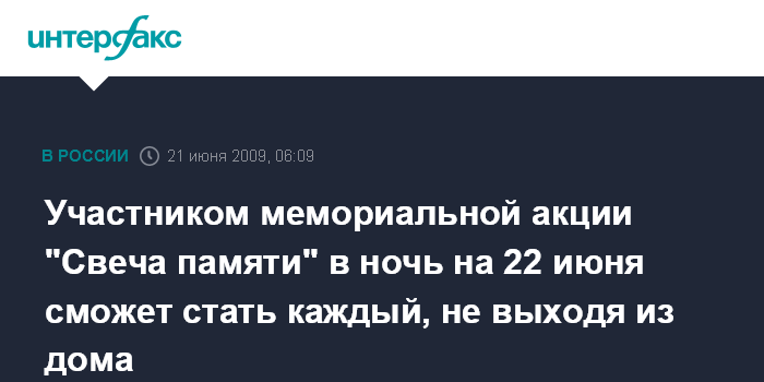 Участником мемориальной акции "Свеча памяти" в ночь на 22 июня сможет стать каждый, не выходя из дома