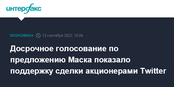 Маск является крупнейшим акционером Twitter с долей около 10%. Соглашение с компанией требует от него голосовать в пользу сделки, однако миллиардер считает, что Twitter нарушила условия соглашения, поэтому непонятно, будет ли он голосовать.