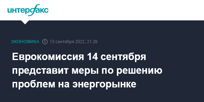 Еврокомиссия 14 сентября представит меры по решению проблем на энергорынке