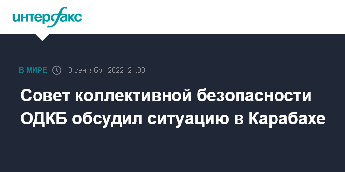 Москва. 13 сентября. INTERFAX.RU - Совет коллективной безопасности ОДКБ на внеочередном заседании в режиме видеоконференции обсудил обстановку на армяно-азербайджанской границе, - сообщила пресс-служба правительства Армении.