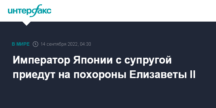 Император Японии с супругой приедут на похороны Елизаветы II