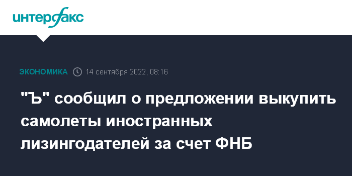 "Ъ" сообщил о предложении выкупить самолеты иностранных лизингодателей за счет ФНБ