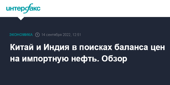 Москва. 14 сентября. INTERFAX.RU - Растущие экономики Китая и Индии, соперничающих за лидирующее место в мире по численности населения, остро нуждаются в энергии и энергоносителях. Собственная добыча нефти этих азиатских государств не обеспечивает существующих потребностей, поэтому Китай и Индия активно импортируют нефтяное сырье из множества стран.