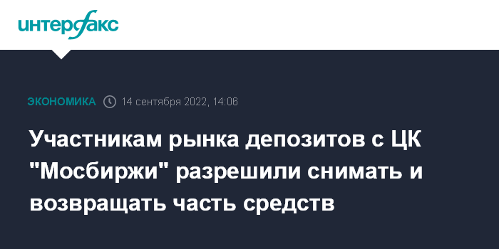 Участникам рынка депозитов с ЦК "Мосбиржи" разрешили снимать и возвращать часть средств