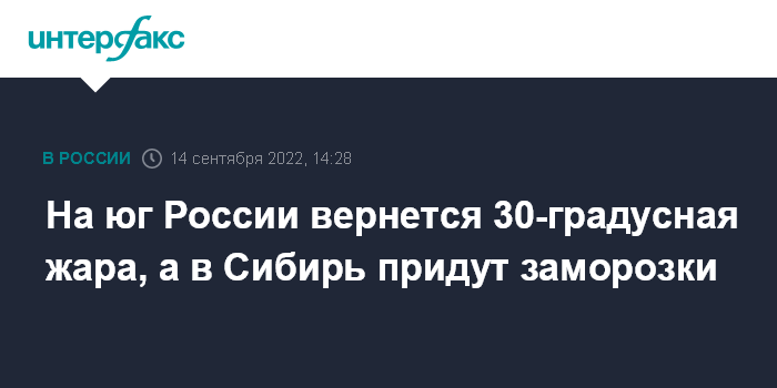На юг России вернется 30-градусная жара, а в Сибирь придут заморозки