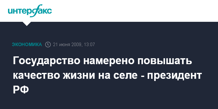 Москва. 21 июня. INTERFAX.RU - Президент РФ Дмитрий Медведев заявил, что одним из приоритетов развития аграрного проекта является повышение уровня жизни сельского населения.