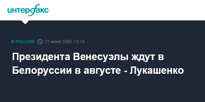 Минск. 21 июня. INTERFAX.RU - Президент Венесуэлы Уго Чавес может посетить Белоруссию с визитом в августе нынешнего года, заявил президент Белоруссии Александр Лукашенко