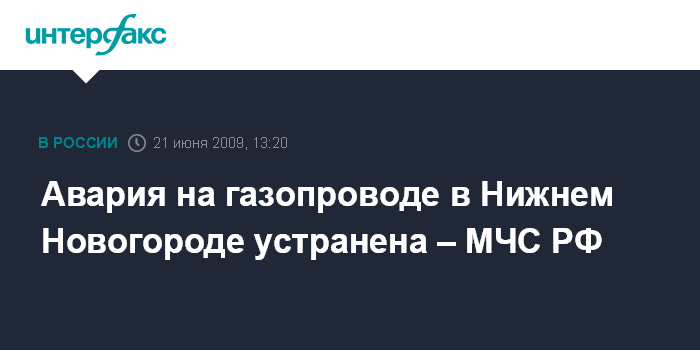 Авария на газопроводе в Нижнем Новогороде устранена – МЧС РФ