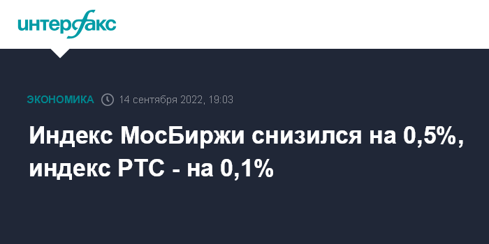 Москва. 14 сентября. INTERFAX.RU - Снижение российского рынка акций вслед за мировыми фондовыми площадками на ожиданиях дальнейшего ужесточения монетарной политики Федрезерва США из-за высокой инфляции сдержал наметившийся отскок котировок нефти и индексов в США.