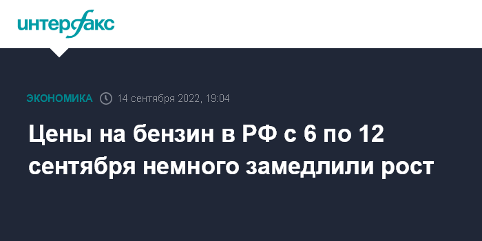 Цены на бензин в РФ с 6 по 12 сентября немного замедлили рост
