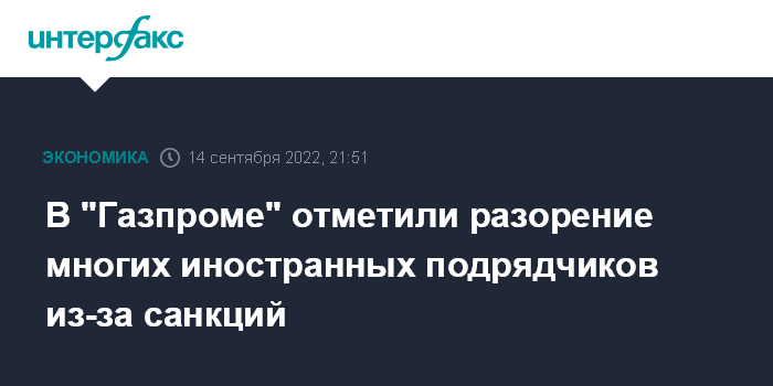 В "Газпроме" отметили разорение многих иностранных подрядчиков из-за санкций
