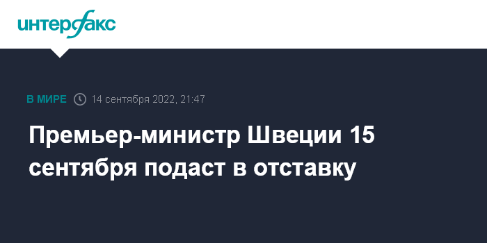 Премьер-министр Швеции 15 сентября подаст в отставку