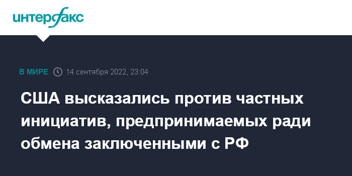 Москва. 14 сентября. INTERFAX.RU - Обсуждение любых проблем, связанных с обменом заключенными между США и Россией, должно проходить исключительно по установленному официальному каналу, инициативы не должны исходить от частных лиц, полагают в госдепе.