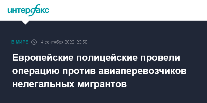 Москва. 14 сентября. INTERFAX.RU - Европейские полицейские на этой неделе провели операцию против преступной группы, занимавшейся контрабандой людей с использованием частных самолетов.