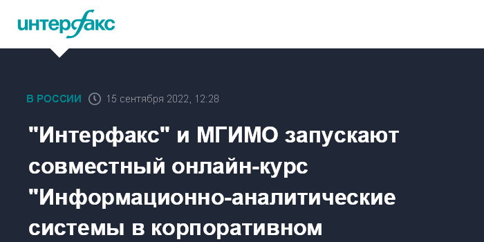 "Интерфакс" и МГИМО запускают совместный онлайн-курс "Информационно-аналитические системы в корпоративном управлении"