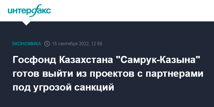"Во все наши текущие договора с потенциальными рисковыми партнерами, которые могут попасть под санкции или акционеры которых являются санкционными лицами, во все эти договора включены так называемые "санкционные оговорки", которые подразумевают выход фонда из данных проектов, причем выход без потерь для "Самрук-Казына" и портфеля его компаний", - уточнил Саткалиев.