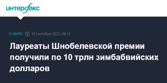 Лауреаты Шнобелевской премии получили по 10 трлн зимбабвийских долларов