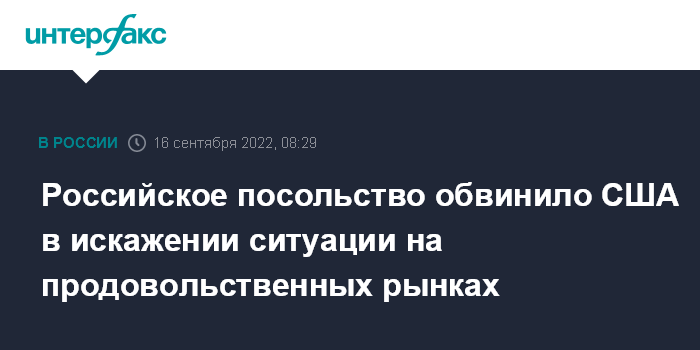 Российское посольство обвинило США в искажении ситуации на продовольственных рынках