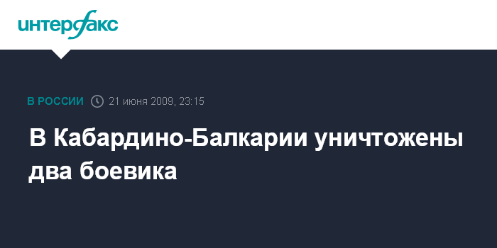 Нальчик. 21 июня. ИНТЕРФАКС-ЮГ - Сотрудники правоохранительных органов Кабардино-Балкарии уничтожили двух боевиков, сообщил агентству "Интерфакс-Юг" руководитель Эльбрусского межрайонного отдела Следственного управления СКП РФ по КБР Ахмед Аттаев.