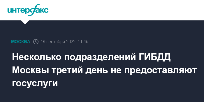 Москва. 16 сентября. INTERFAX.RU - Работа нескольких подразделений столичного ГИБДД до сих пор приостановлена из-за технического сбоя, который произошел в работе информационных ресурсов ведомства 14 сентября, сообщили в пресс-службе Госавтоинспекции Москвы.