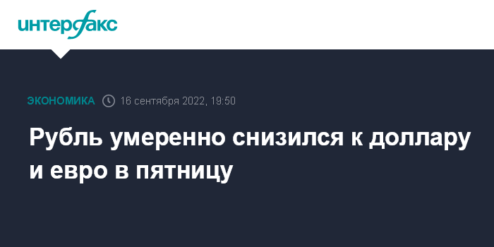 Как отмечают эксперты "Интерфакс-ЦЭА", рубль продемонстрировал в последний день недели умеренно негативную динамику к доллару и евро, отреагировав на негативный внешний фон (падающие мировые фондовые рынки), который сформировался на опасениях агрессивного повышения процентных ставок Федрезервом. Европейские фондовые площадки к вечеру пятницы опустились на 0,6-1,7%, американские фондовые индикаторы теряли в ходе торгов 0,9-1,4%, а российские индексы МосБиржи и РТС снизились к концу торгов на 0,6-1%. Давление на курс нацвалюты оказывало и некоторое снижение объема продаж валютной выручки экспортерами в конце недели. Вместе с тем некоторую поддержку рублю оказали развернувшиеся вверх в рамках коррекции нефтяные цены.