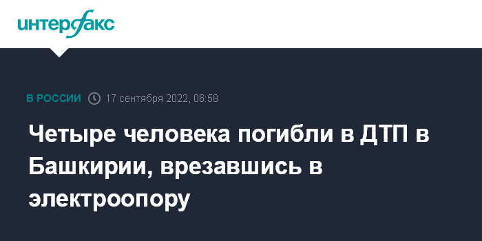 Четыре человека погибли в ДТП в Башкирии, врезавшись в электроопору