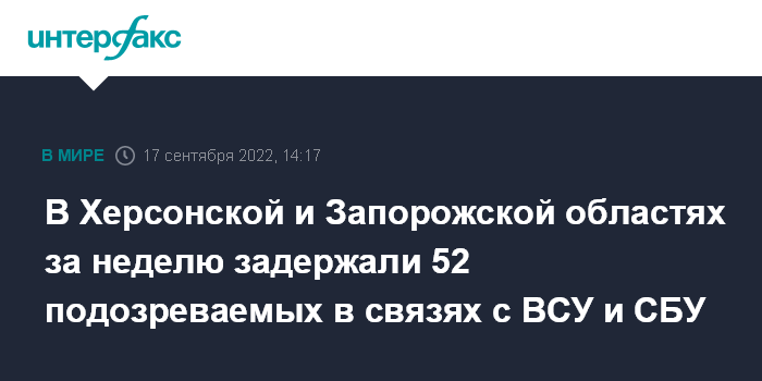 В Херсонской и Запорожской областях за неделю задержали 52 подозреваемых в связях с ВСУ и СБУ
