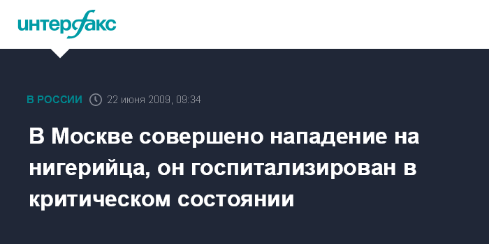 В Москве совершено нападение на нигерийца, он госпитализирован в критическом состоянии